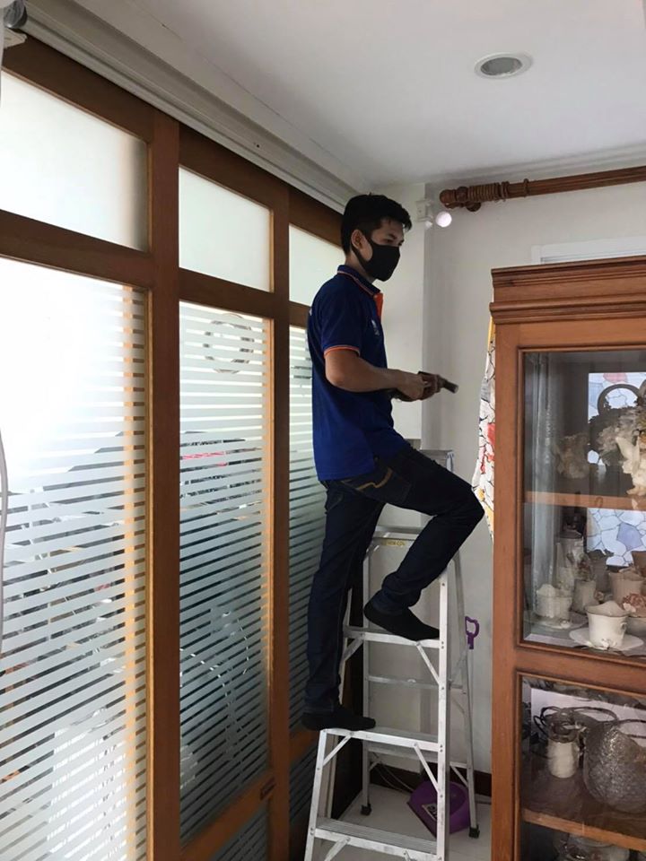 ทีมช่างติดตั้งแอร์บ้านให้กับบ้านพักแห่งหนึ่งจังหวัดระยอ